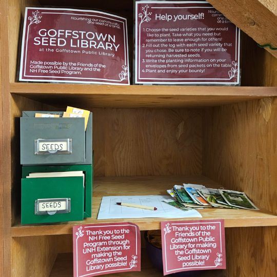 The Goffstown Seed Library is made possible by the Friends of the Goffstown Public Library and the New Hampshire Free Seed Project.